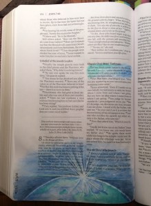 *** I did not prep the page. First I used my galaxy white pen for the light. After it dried I used Inktense pencils to add the color and painted with water. The color resisted over the white which gives the feeling of light in the darkness. I did use a little colored pencil to define some detail.