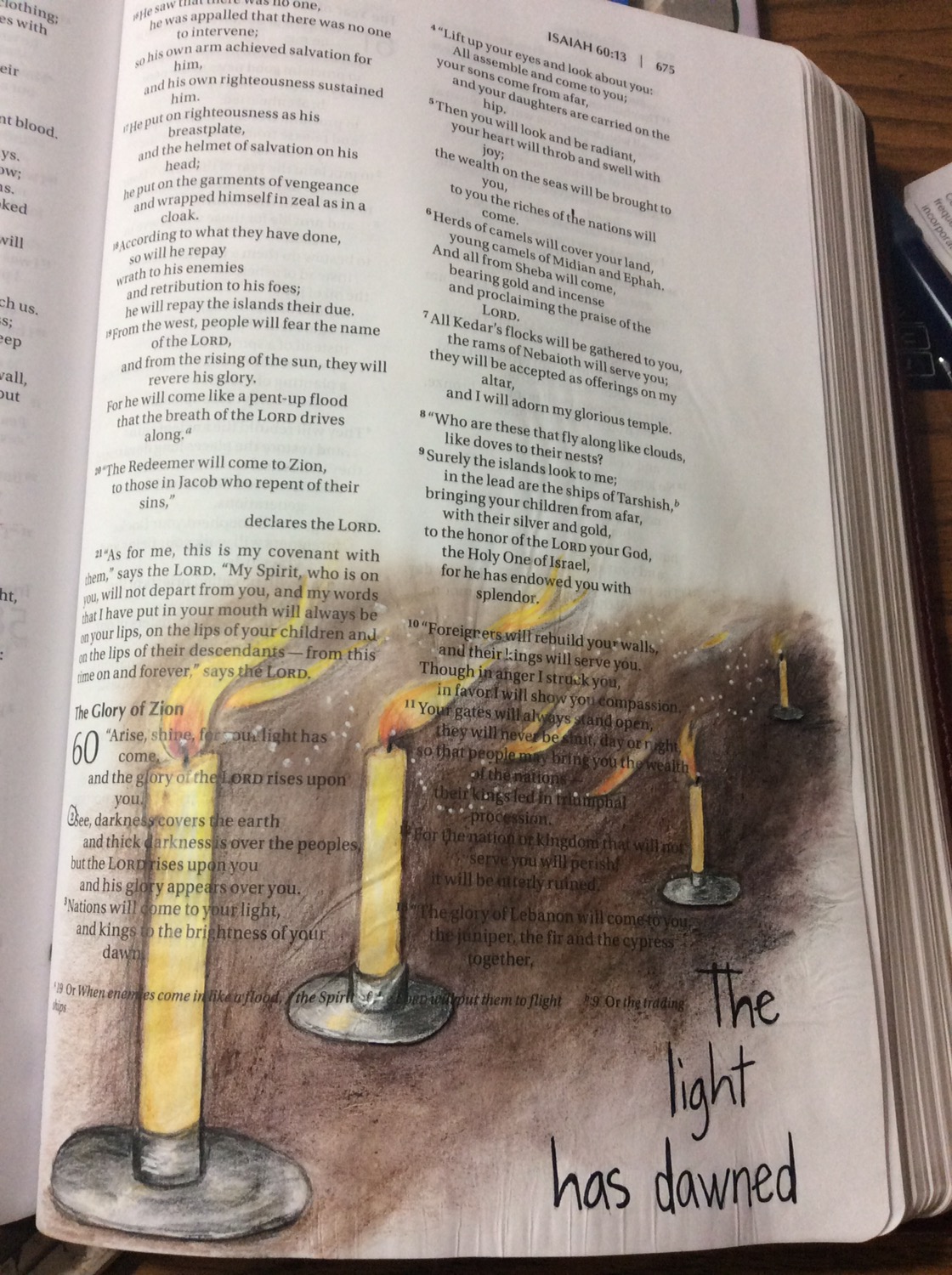 Arise, shine, for YOUR light has come, and the glory of the Lord rises upon YOU. See, darkness covers the earth and thick darkness is over the peoples, but the Lord rises upon YOU and his glory appears over YOU. Nations will come to YOUR light, and kings to the brightness of YOUR dawn. Isaiah 60:1-3 NIV