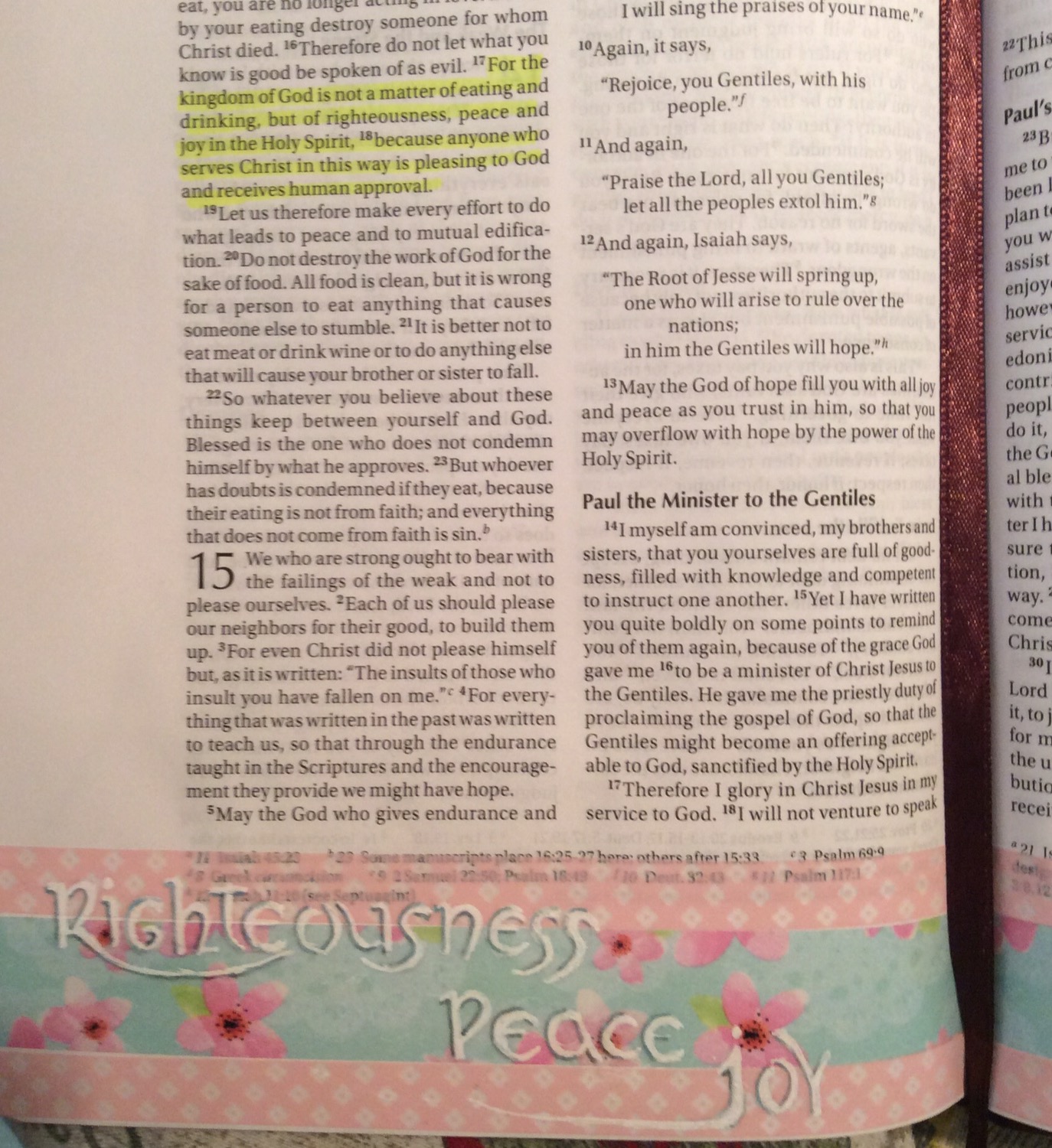 If I want to share the story of the Kingdom, having joy is as important as righteousness and peace.