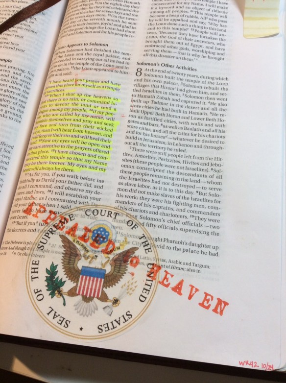 In chapter 6 Solomon has finished God’s temple and prays a long prayer for God’s blessing and favor over the temple, asks the Lord to make it a place of answered prayer, and an abiding place for God’s presence. But most of the prayer asks God to make the temple a HIGH SUPREME COURT full of His justice and mercy, and healing, especially in the case of national sins.
