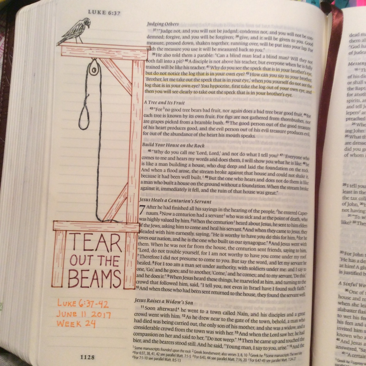Once again, I must let go of my OWN support beams to see clearly and bring light in darkness. What support beams are you clinging to in order to bring about judgement? Tear down the scaffolding YOU have built. Let go, so you can see through the eyes of Your Father once again and be the Isaiah 61 person you were meant to be.